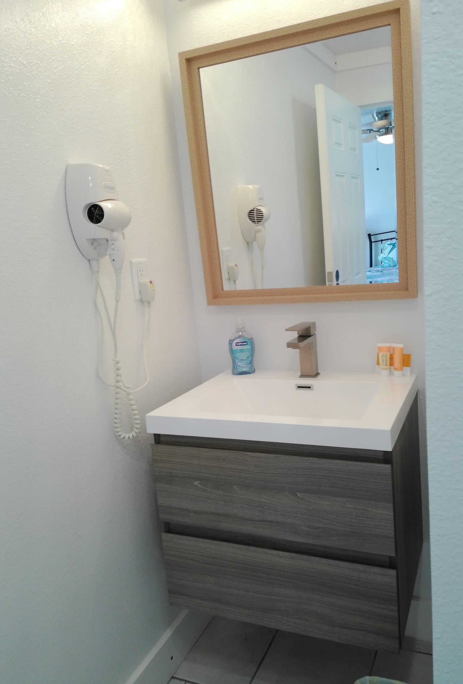 My boyfriend and I stayed here in room 5 the “Cayman” on the water front. The room was clean, A/C was blasting nicely and it was very roomy! They even had a little welcome basket of snacks for us. Edith was wonderful and so accommodating when we arrived a bit early. She had the gentleman who was working around the grounds give us a key and allowed us to get into the room. We then checked in an hour or so later at the front desk. There are pontoon boats just steps away, and the tandem kayaks are free to use. We WILL be back! Super cute and clean, stay here you won’t be sorry.